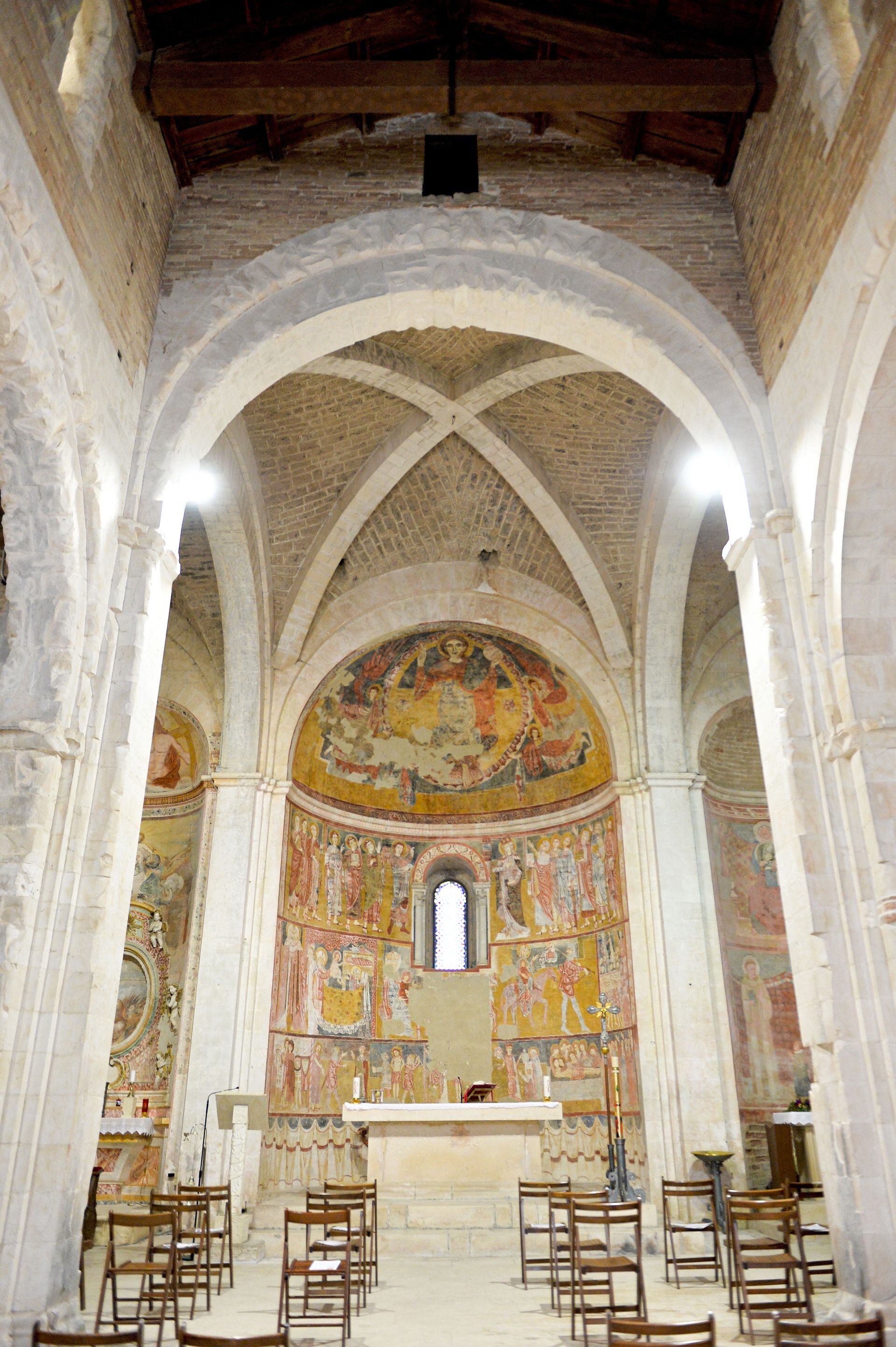 Il nostro itinerario si conclude ai piedi del Gran Sasso dove sorge la Chiesa di San Giovanni ad Insulam: fondata probabilmente tra l'XI e il XII secolo assieme al diruto monastero benedettino, è uno dei primi esempi di quel modello a terminazione orizzontale con archetti pensili che diverrà tipico dell'architettura abruzzese e non solo. Delle sue origini non conserviamo notizie indirette da un decreto del 1184 emesso dal papa Lucio II per risolvere la questione di attribuzione di poteri e proprietà tra il vescovo e l'abate. L'edificio è rimasto integro perché è riuscito a sfuggire ai pesanti interventi e rifacimenti dell'epoca barocca. L'intero organismo si compone di una cripta e della chiesa superiore. La cripta costruita nel XI secolo, è di chiara impronta benedettina. La chiesa superiore appartiene ad una seconda fase costruttiva relativa al XII secolo e si presenta a tre navate con un'abside. Nell'abside è presente l' affresco del Redentore tra Maria e S. Giovanni Battista del 1421.
